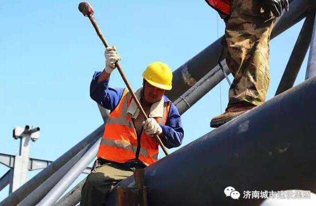 9月8日上午,濟(jì)南西部會(huì)展中心項(xiàng)目的第一榀(pǐn,屋架量詞)屋面鋼結(jié)構(gòu)桁架吊裝完成,五號(hào)展館的鋼結(jié)構(gòu)主體雛形初現(xiàn),濟(jì)南西部會(huì)展中心的建設(shè)步伐又推進(jìn)了扎實(shí)一步。