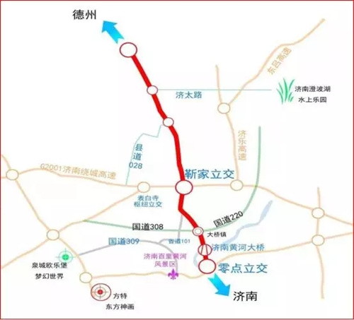 沿線居民和企業(yè)通過(guò)靳家互通立交往東直達(dá)遙墻國(guó)際機(jī)場(chǎng)、連接濟(jì)樂(lè)和濟(jì)東高速,往西連接青銀直通京福、濟(jì)聊高速,極大地方便了黃河北地區(qū)市民出行。