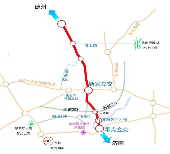 沿線居民和企業(yè)通過靳家互通立交往東直達(dá)遙墻國際機(jī)場、連接濟(jì)樂和濟(jì)東高速,往西連接青銀直通京福、濟(jì)聊高速,極大地方便了黃河北地區(qū)市民出行。