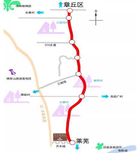 沿線旅游資源豐富,古文化遺跡眾多,直通齊長城、平郭城遺址、錦屏山風(fēng)景區(qū)、呂祖泉旅游區(qū),途徑三德范、西王黑、大寨、田廣等歷史悠久古村鎮(zhèn),到萊蕪雪野湖景區(qū)僅需15分鐘車程。