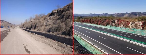 工程中央分隔帶安裝新型防眩網(wǎng),顏色亮麗、美觀大方,既隔離上下行車道,又防護(hù)夜間行駛車輛燈光,達(dá)到防眩和隔離的目的,為旅游大道增添了一道亮麗的風(fēng)景線。