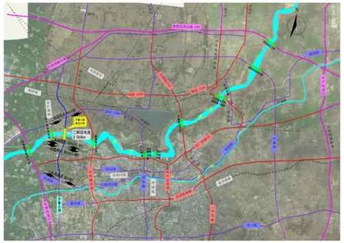 兩座大橋均按照雙向八車道一級公路標準建設,兼顧城市主干路功能,設計速度60公里/小時,跨黃段橋梁范圍為公軌合建的橋梁形式,中間預留城市軌道交通空間,滿足城市軌道交通縱斷面相關技術條件。