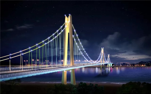 鳳凰黃河大橋的外觀設計取杜甫《望岳》一詩中“鐘靈毓秀”之意。寰宇茫茫,齊魯泱泱。鐘靈毓秀,源遠流長。自錨式懸索橋具有兼收并蓄、剛柔相濟的渾厚風格,索塔體現其陽剛的一面,而流暢的主纜線形則將其柔美展現的淋漓盡致。