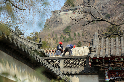 同時,在確保工期的基礎(chǔ)上,嚴格遵循古建修復(fù)規(guī)律,修舊如舊,最大程度保護華陽宮古建筑群的原生態(tài)歷史風(fēng)貌,與省內(nèi)資質(zhì)最高、經(jīng)驗最豐富的曲阜市三孔古建筑工程管理處通力合作,原汁原味呈現(xiàn)華陽宮“新貌”。近日,我們走進了華陽宮古建筑群修復(fù)現(xiàn)場,為大家揭秘修復(fù)工作中的“四大工種”與“六大古法”。