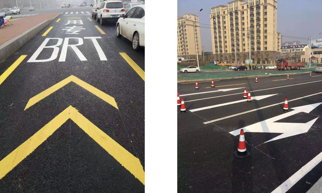雙組份高亮標線涂料的主要原料是 “甲基丙烯酸甲酯”(英文縮寫MMA),此次路面標線施劃的標線涂料全部采用MMA雙組份,具體施工內(nèi)容為MMA雙組份標線(刮涂)6100㎡、MMA雙組份標線(甩涂)4300㎡、MMA雙組份標線(噴涂)2200㎡。
