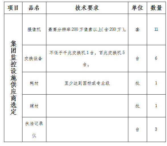 1.項目名稱:濱河集團增加監控設施供應商選定