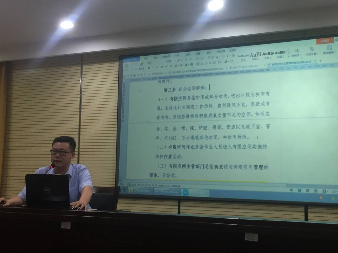 為更好的推進落實《有限空間作業(yè)管理制度》,增強管理人員和作業(yè)人員對制度和相關法律法規(guī)的認識,加強有限空間作業(yè)審批及管控力度,降低安全事故發(fā)生概率,安全質(zhì)量部和企管人力部在6月6日下午共同組織了公司《有限空間作業(yè)管理制度》及有限空間作業(yè)相關法律規(guī)范的培訓活動。