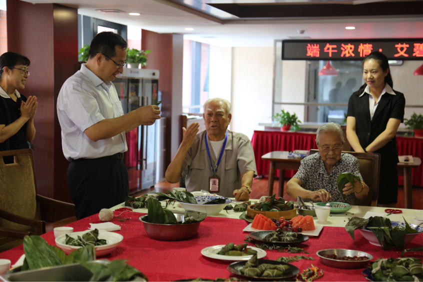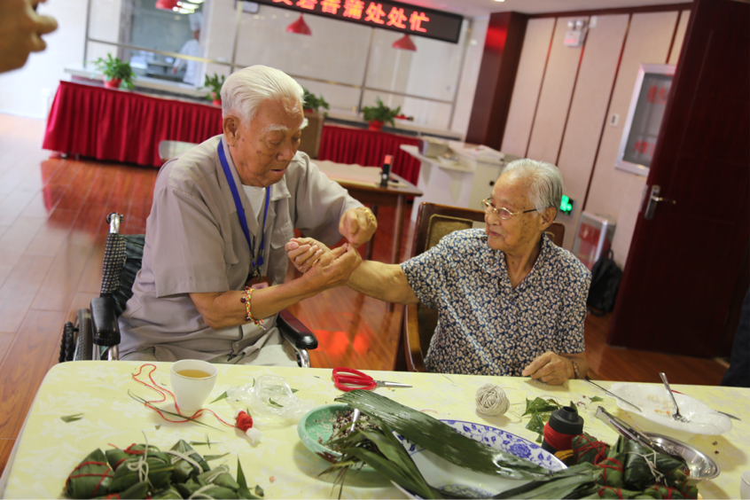 五月五,是端陽。門插艾,香滿堂;吃粽子,灑白糖;龍舟下水喜洋洋。6月18日,山東濟南養老服務中心的老人們迎來了入住以來的第一個端午節,服務人員們也忙得不亦樂乎。