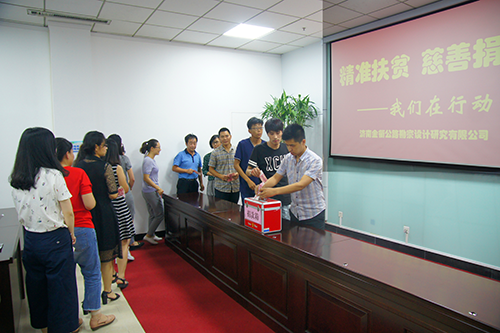 為全面踐行習(xí)近平新時(shí)代中國特色社會主義思想,深入貫徹落實(shí)習(xí)近平總書記“精準(zhǔn)扶貧、精準(zhǔn)脫貧”要求,弘揚(yáng)中華民族扶貧濟(jì)困的傳統(tǒng)美德,鼓勵(lì)干部職工積極投身慈善事業(yè),根據(jù)集團(tuán)《關(guān)于開展2018年“精準(zhǔn)扶貧慈善捐款”活動實(shí)施方案》的要求,6月15日下午,濟(jì)南金衢公路勘察設(shè)計(jì)研究有限公司組織全體黨員干部群眾在第一會議室開展“精準(zhǔn)扶貧慈善捐款”活動。