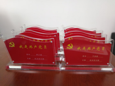 活動中,機關支部黨員結合自身崗位實際,做出爭創“黨員先鋒崗”承諾,由支部統一制作“我是共產黨員”座牌,擺放在每位黨員辦公桌的醒目位置。通過座牌亮出黨員光榮身份,時刻警醒和監督黨員,踐行承諾,接受群眾監督,使黨員的身份意識、責任意識和先鋒模范意識得到進一步提高。