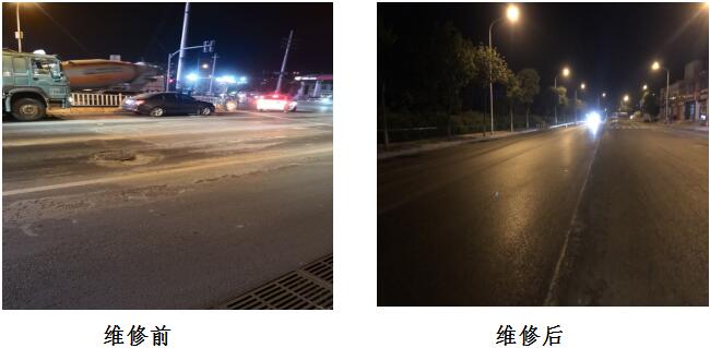 針對市民群眾反映文清小學門口路面破損問題,由于超載車輛過多,路面塌陷嚴重,教師學生及過往人員較多,多次修復后路面問題依舊沒有得到解決,巡檢人員了解情況后決心集中力量從基層處理該處破損,采用大型洗刨車,重做基層,新瀝攤鋪有效解決了該處破損,得到了老師家長的一致認可。