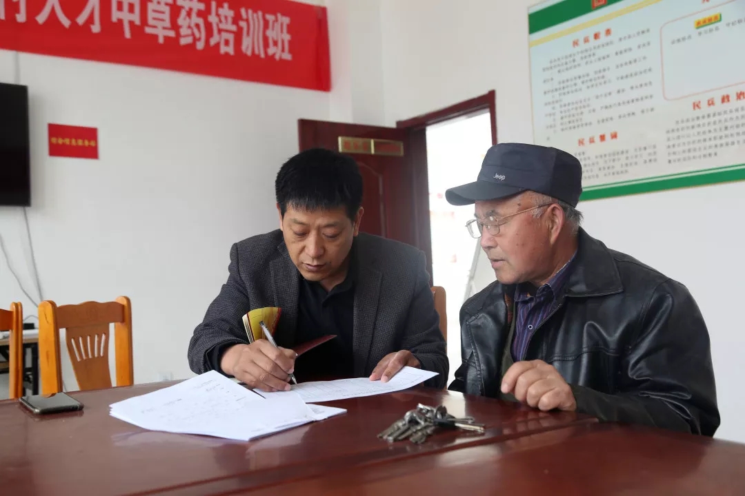到村后,張慶紅首先與村委會副主任路傳童對接了農田灌溉機井安裝電表及貧困戶安置房維修事宜。