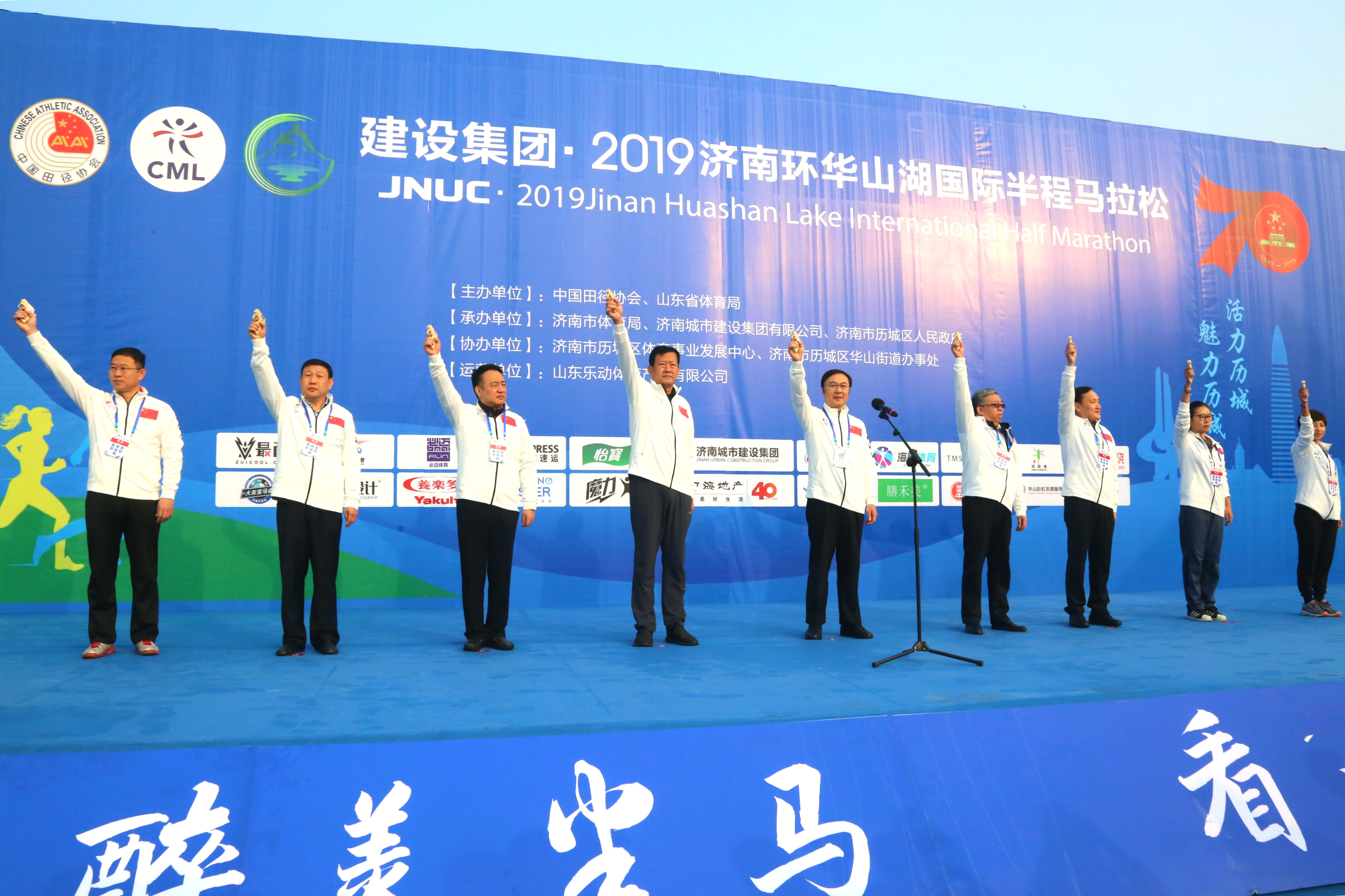 19日上午8點(diǎn),建設(shè)集團(tuán)·2019濟(jì)南環(huán)華山湖國(guó)際半程馬拉松賽鳴槍開(kāi)跑,來(lái)自國(guó)外的20余名選手和全國(guó)近7200多名跑友報(bào)名參賽,共同感受馬拉松項(xiàng)目帶來(lái)的運(yùn)動(dòng)魅力。市委常委、宣傳部部長(zhǎng)楊峰,山東省體育總會(huì)專(zhuān)職常務(wù)副主席隋擁軍,市人大常委會(huì)副主任許強(qiáng),市政協(xié)副主席劉夢(mèng)海,歷城區(qū)委書(shū)記吳承丙,市體育局局長(zhǎng)孔杰,中國(guó)田徑協(xié)會(huì)社會(huì)活動(dòng)部李響,濟(jì)南城市建設(shè)集團(tuán)董事長(zhǎng)張海平,濟(jì)南中海地產(chǎn)有限公司總經(jīng)理孫亞茜等出席開(kāi)幕式并為開(kāi)賽鳴槍。