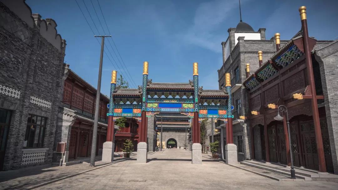 由濟(jì)南城市建設(shè)集團(tuán)、華誼兄弟傳媒股份有限公司、華誼兄弟實(shí)景娛樂(lè)有限公司合力打造的華誼兄弟電影城(濟(jì)南)老濟(jì)南街占地85畝,是清末民國(guó)初期為時(shí)代背景的北方街區(qū),中西式建筑風(fēng)格交相輝映,包含城門、商店街、火車站、醫(yī)院、警察廳、城隍廟等,共計(jì)72棟單體建筑。