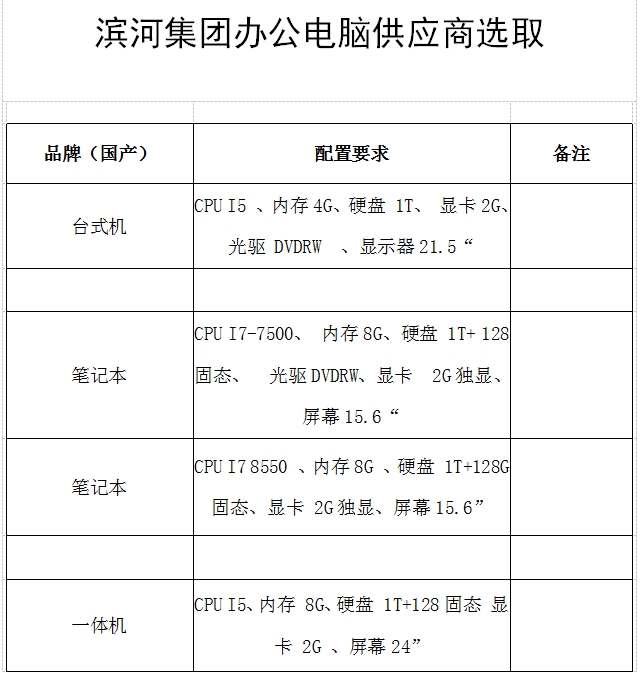 現(xiàn)對集團(tuán)辦公電腦采購選取供應(yīng)商進(jìn)行詢價,有關(guān)事項通知如下,歡迎各單位參加報價。