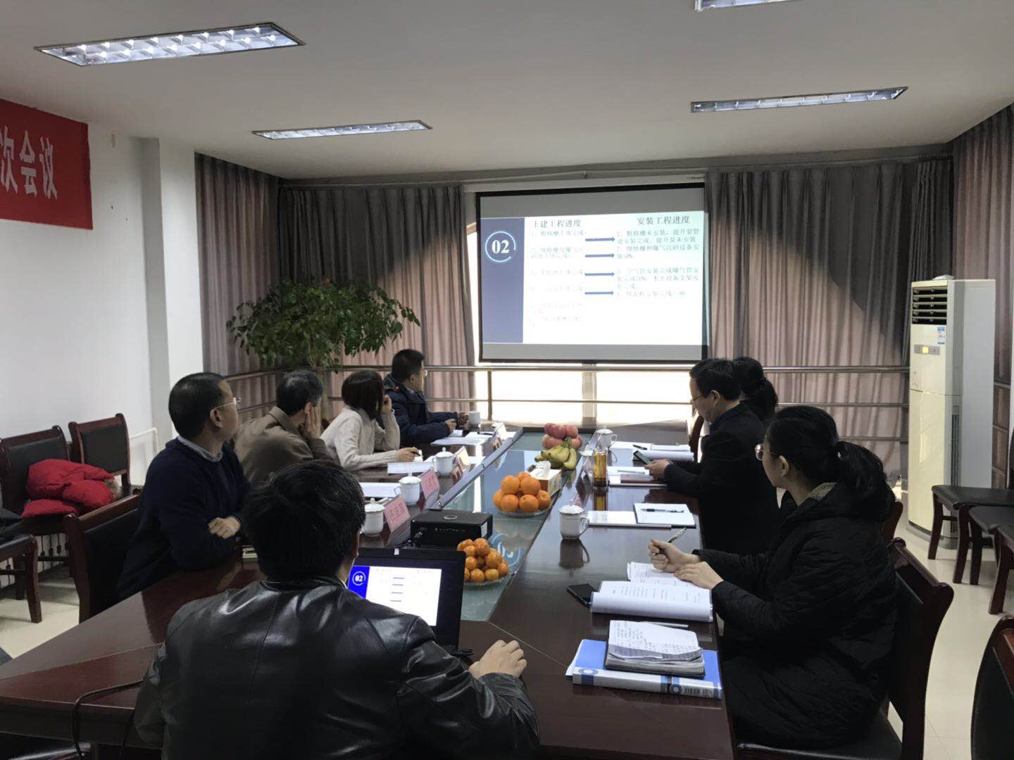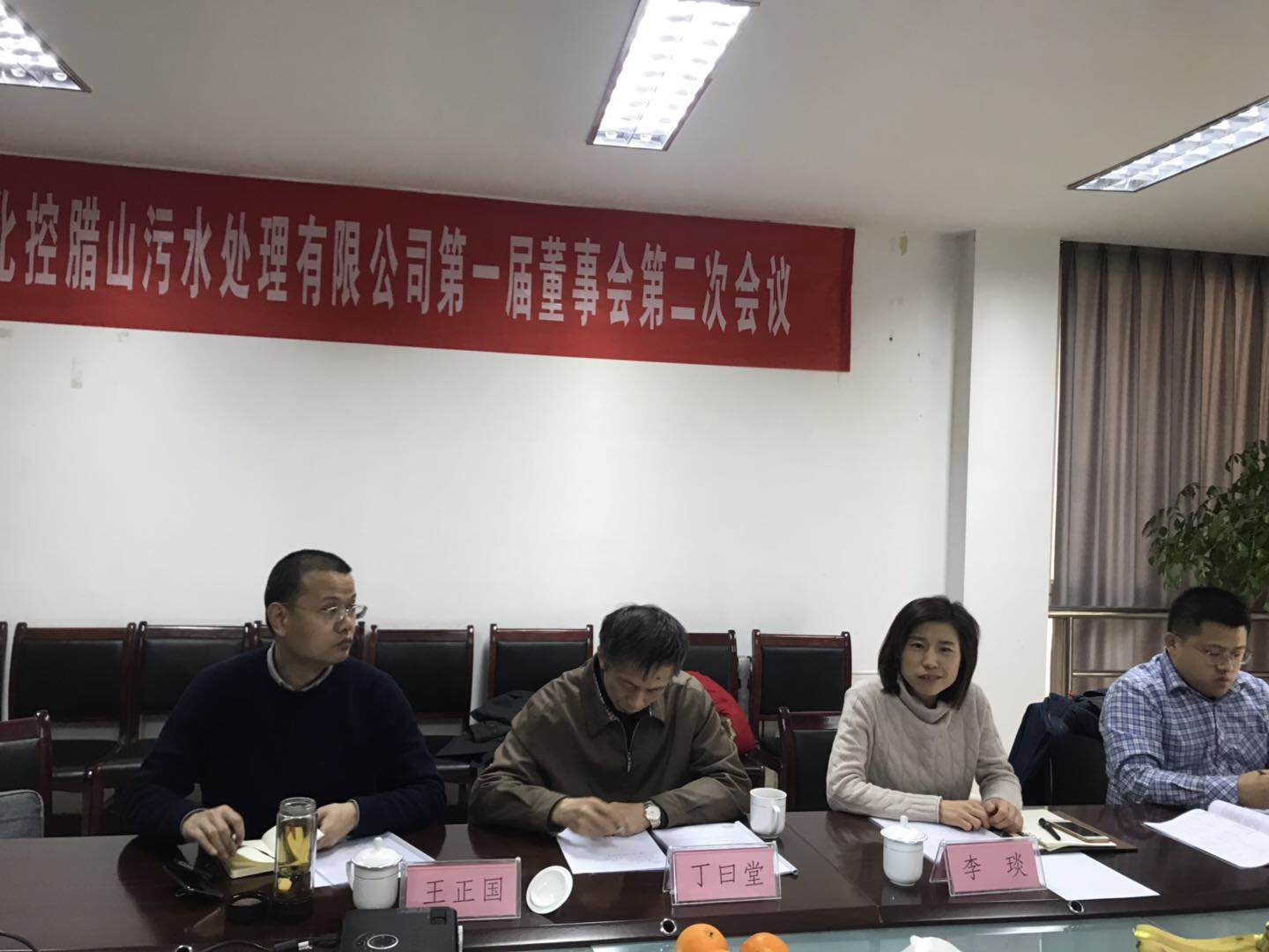 總經理喬榮民向董事會匯報領導班子職責及分工,副總經理史明文匯報北控臘山污水處理有限公司施工進度計劃。