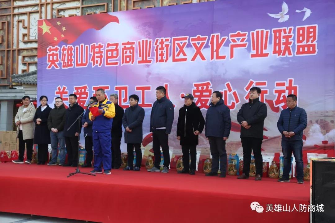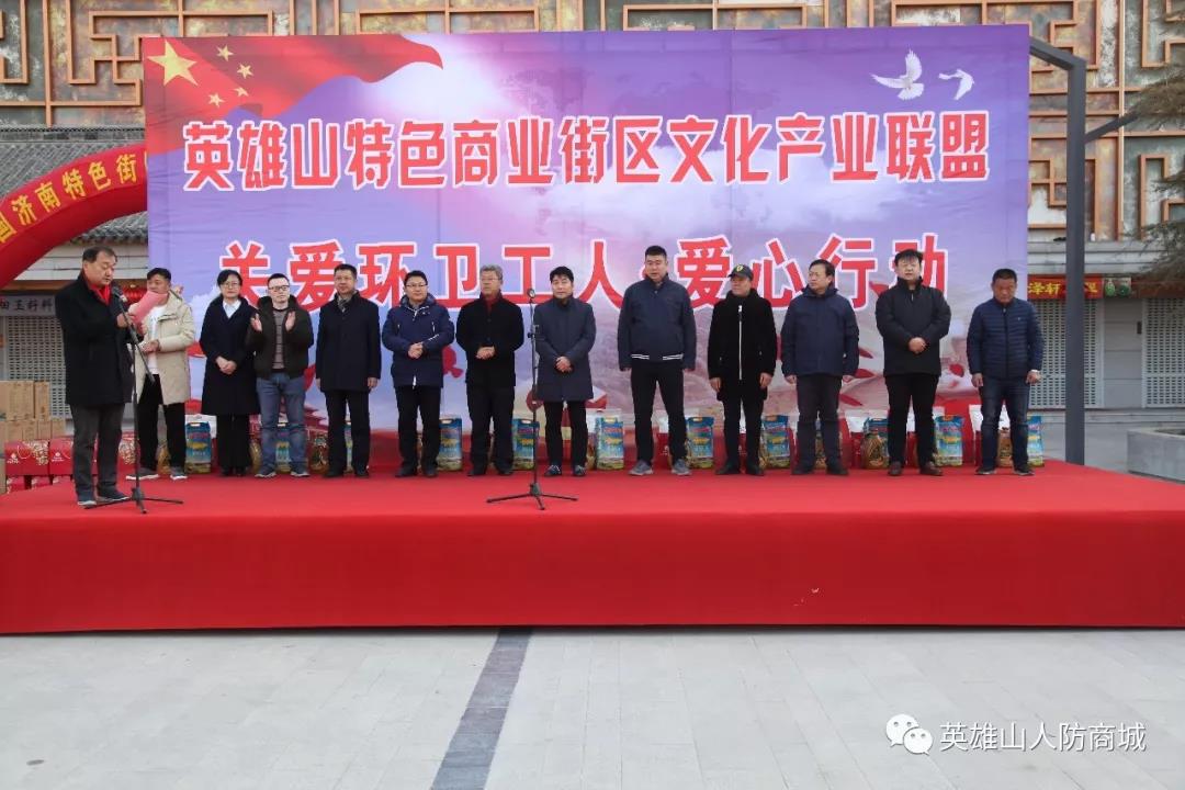 2019年2月1日,農歷臘月二十七,濟南市英雄山人防工程管理有限責任公司作為英雄山特色商業街區文化產業聯盟成員單位,與多家聯盟單位聯合發起了中國濟南特色街區聯盟“關愛環衛工人,愛心行動”主題公益活動,為服務于街區的環衛工人們獻上節日的祝福,并送上了個人捐款與農副產品。市中區副區長潘建軍、四里村街道辦事主任崔珉受邀參加了本次活動。