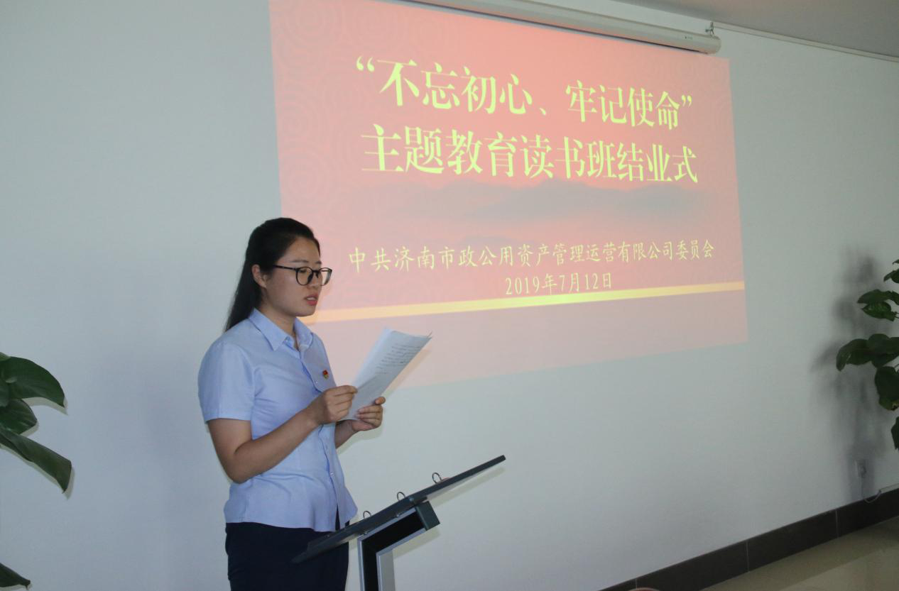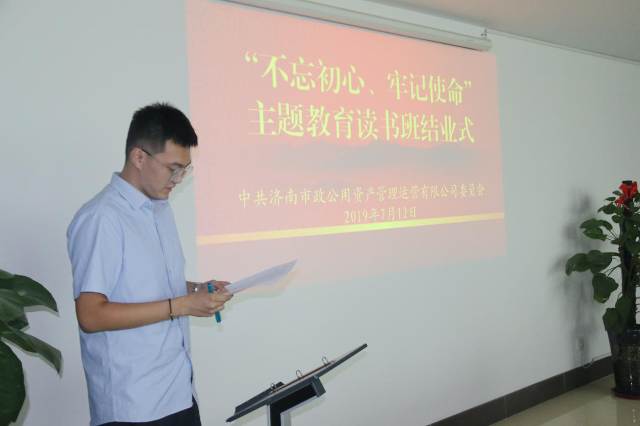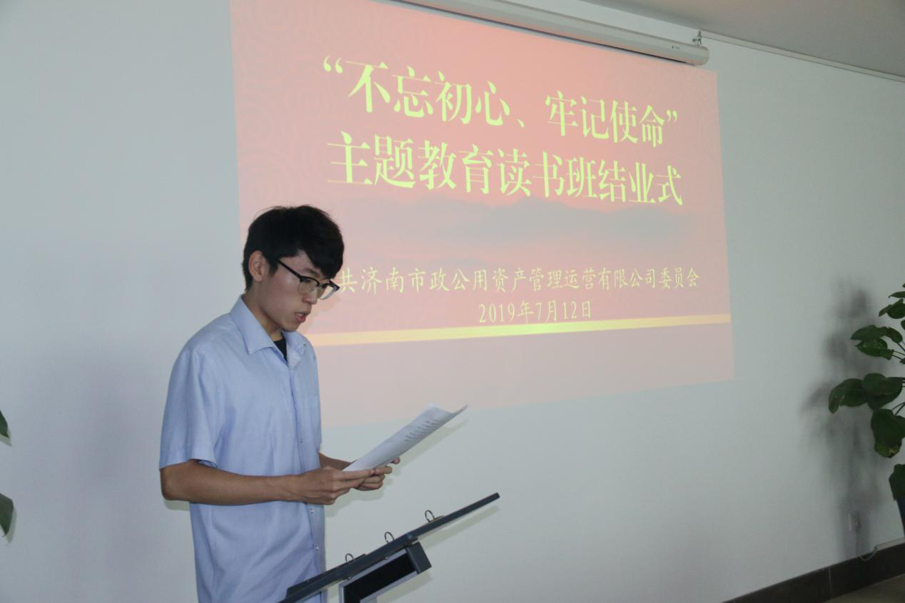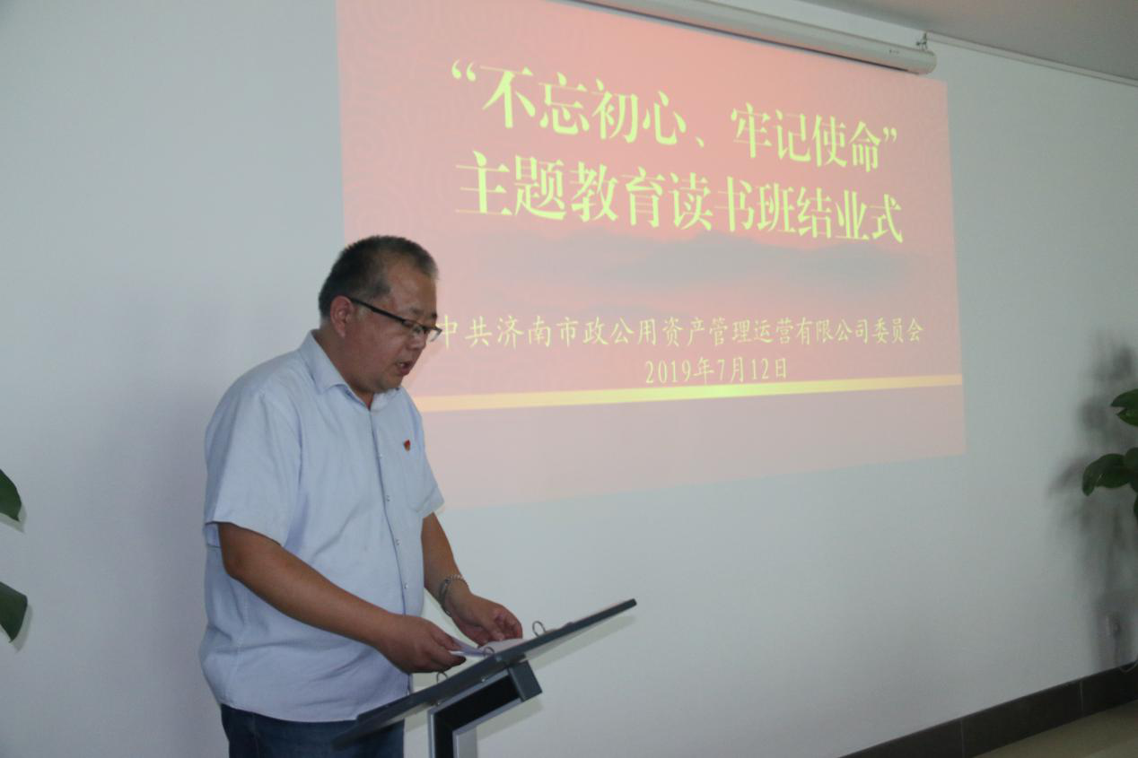 根據中央要求和省委、市委安排部署,按照市委主題教育領導小組辦公室《關于舉辦第二期“不忘初心、牢記使命”主題教育讀書班的通知》和濟南城市建設集團黨委要求,7月5日至7月12日期間,濟南市政公用資產管理運營有限公司舉辦“不忘初心、牢記使命”主題教育讀書班,并于7月12日上午在公司1066會議室舉辦結業儀式。公司黨委副書記、總經理李少成同志出席結業式并講話,公司領導班子成員、主管及以上人員、全體黨員參加了此次結業式,會議由公司黨委委員、副總經理史德茂同志主持。