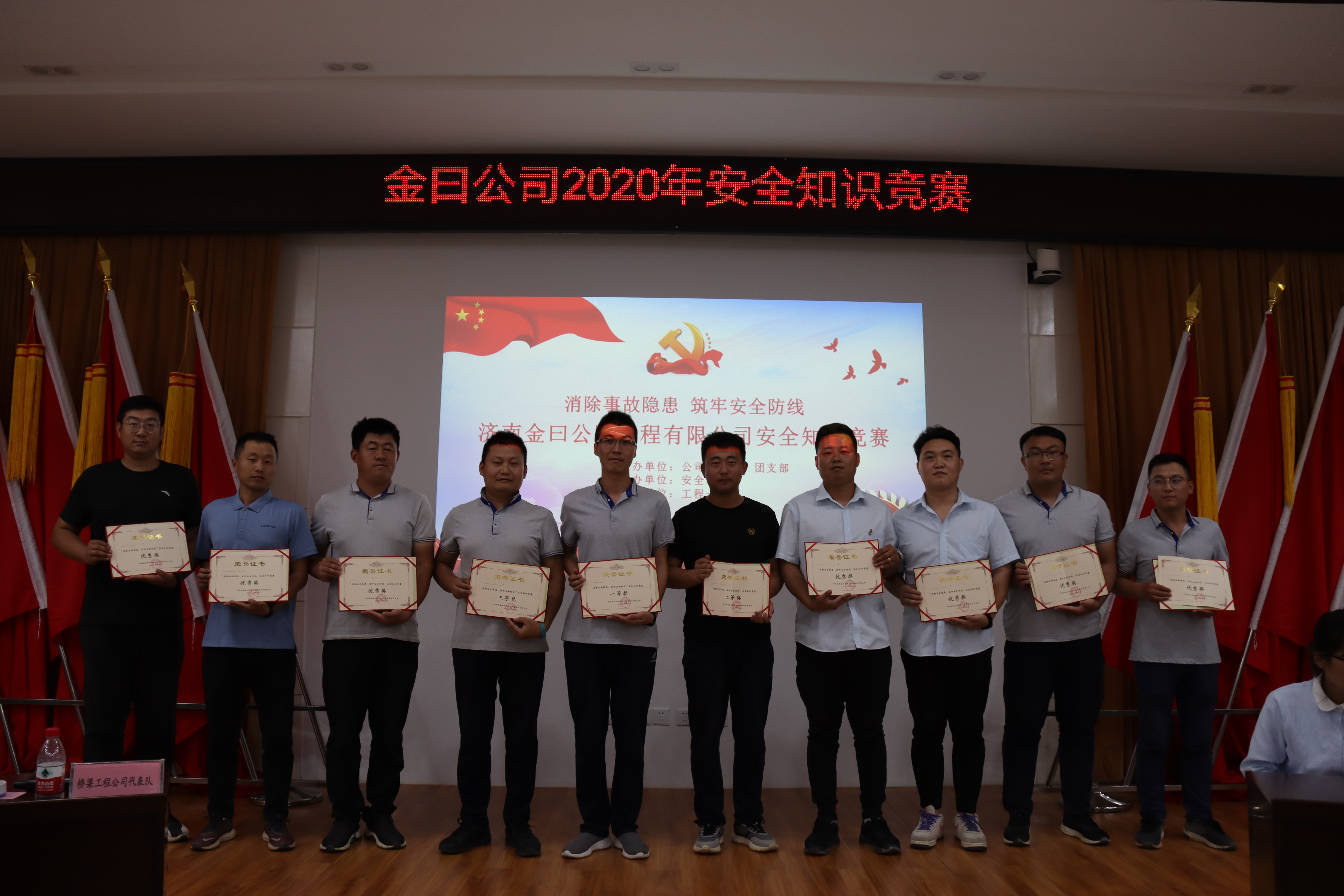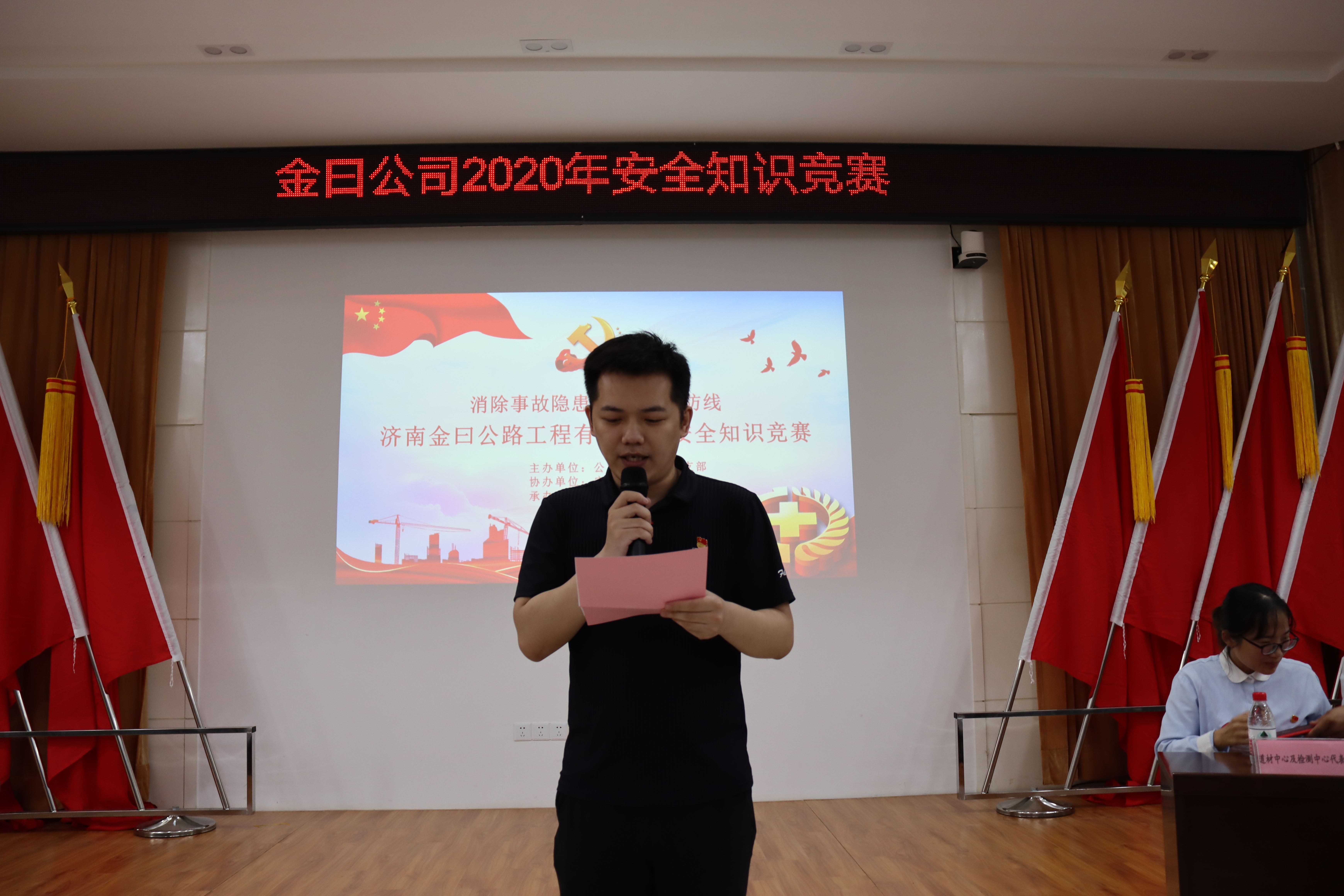 為響應2020年安全月“消除事故隱患,筑牢安全防線”的主題號召,全面貫徹上級黨委對安全生產工作的部署,普及安全生產知識,濟南金曰公路工程有限公司團支部于6月24日舉辦了安全知識競賽。建設集團團委書記張旸、安委辦侯守軍主管、市政資產運營公司團支部書記王一丁、齊魯交通集團濟南公司副總田中亞等出席活動并擔任活動評委。