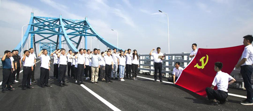 在活動(dòng)中,建設(shè)集團(tuán)資產(chǎn)管理部黨支部和市政資產(chǎn)運(yùn)營公司黨委共40余名黨員站在濟(jì)樂高速南延線公路現(xiàn)場(chǎng)觀摩了濟(jì)樂高速南延工程的建設(shè)情況,并面對(duì)黨旗重溫入黨誓詞。黨員們聲音鏗鏘有力,表達(dá)著每一位黨員在未來的道路上將會(huì)更加堅(jiān)定地?fù)碜o(hù)黨的領(lǐng)導(dǎo),努力踐行共產(chǎn)黨人的初心和使命。