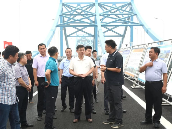 7月21日,集團(tuán)黨委書(shū)記、董事長(zhǎng)張海平帶隊(duì)到濟(jì)樂(lè)高速南延項(xiàng)目察看項(xiàng)目建設(shè)推進(jìn)情況,并召開(kāi)專(zhuān)題會(huì)議調(diào)度北跨橋隧項(xiàng)目建設(shè)工作。集團(tuán)副總經(jīng)理許為民參加活動(dòng)。