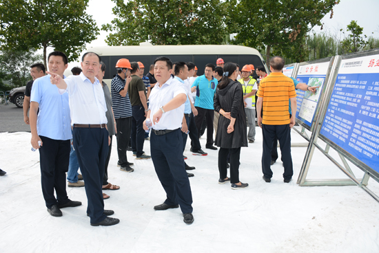 8月8日下午,濟南市城鄉交通運輸局局長賈玉良,城市建設集團黨委書記、董事長張海平等一行,來到由集團公司承建的奧體西路齊煙攬華工程項目施工現場,察看工程建設情況。集團公司黨委書記、董事長張明生,副總經理趙振華及分公司相關人員陪同察看。