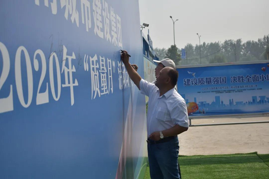 儀式結束后,參加活動全體人員在“質量月”活動動員大會背景板簽名。