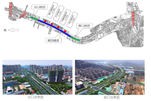 濟南市順河快速路南延(英雄山立交至南繞城高速)建設工程是濟南市“兩橫、三縱”快速路網的重要組成部分,項目北起英雄山立交、南至南繞城高速,全長約5.1公里。項目一標段由濟南城建集團有限公司承建,北起英雄山立交、南至魯能領秀公館,全長約2.2公里,主要包含1.5公里暗挖隧道、0.7公里明挖段以及配套綜合管廊、排水、道路、專業管線等工程內容。
