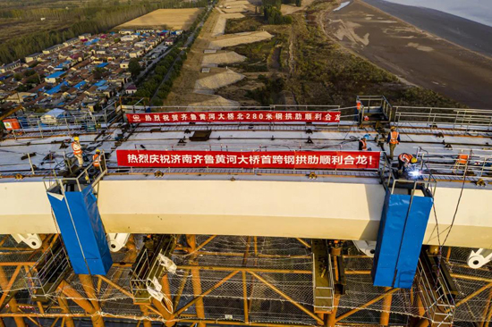 繼濟(jì)樂(lè)高速南延線順利通車、鳳凰黃河大橋主橋合龍后,由濟(jì)南城市建設(shè)集團(tuán)負(fù)責(zé)建設(shè)管理的跨黃通道工程又迎來(lái)重要節(jié)點(diǎn),經(jīng)過(guò)90天的連續(xù)作業(yè),10月21日凌晨,齊魯黃河大橋首跨拱肋順利合龍。隨著最后一節(jié)段拱肋的精準(zhǔn)安裝到位,項(xiàng)目建設(shè)再次取得重要節(jié)點(diǎn)性進(jìn)展。