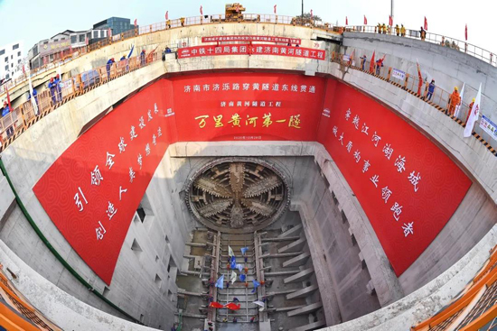 10月30日,隨著“泰山號(hào)”盾構(gòu)機(jī)巨大刀盤破土而出,第1254環(huán)管片拼裝到位,“萬里黃河第一隧”濟(jì)南黃河隧道工程?hào)|線隧道率先貫通,標(biāo)志著我國在建的最大直徑公軌合建盾構(gòu)隧道取得重大進(jìn)展,在世界上首次穿越地上“懸河”。該工程由濟(jì)南城市建設(shè)集團(tuán)負(fù)責(zé)投資建設(shè),中鐵十四局集團(tuán)作為EPC總承包方,聯(lián)合中鐵第四勘察設(shè)計(jì)院集團(tuán)有限公司、黃河勘測(cè)規(guī)劃設(shè)計(jì)有限公司組織施工、設(shè)計(jì)。