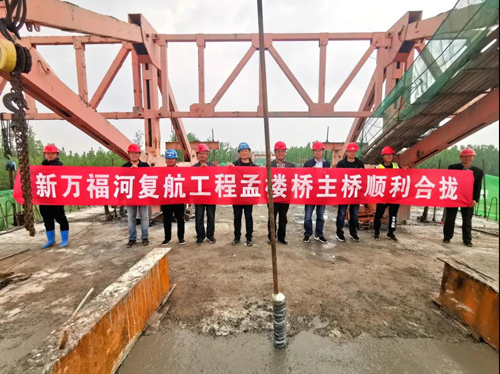 4月19日,隨著最后一方混凝土澆筑完成,經過10個月的建設,濟寧金鄉新萬福河復航工程孟樓橋懸臂現澆箱梁順利合攏。
