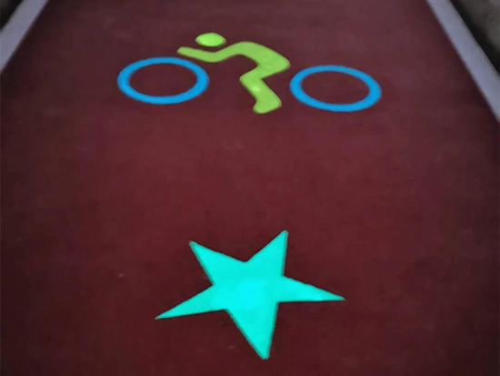 通過在瀝青面層填充熒光發(fā)光材料,使道路夜間能夠發(fā)出熒光,讓平淡無奇的道路煥發(fā)新的生機。熒光材料采用環(huán)保無毒材料,提升道路美觀性的同時,減少了對環(huán)境的影響。