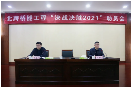 為全力沖鋒橋隧建設攻堅戰,確保項目建設有序推進,3月14日,濟南城市建設集團召開北跨橋隧工程“決戰決勝2021”動員會。集團黨委副書記、總經理史海成出席會議并講話,集團副總經理許為民主持會議,集團各相關部室、項目各參建單位負責同志參加會議。