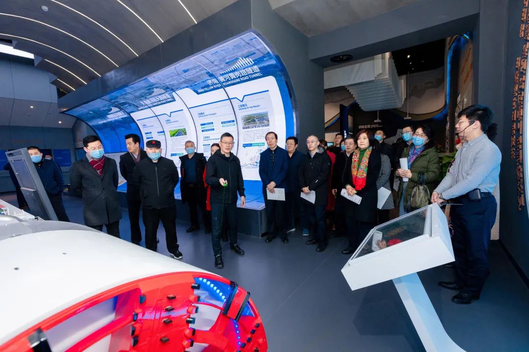 調研組一行實地察看了濟南黃河濟濼路隧道項目現場及“濟南城市建設集團四橋四隧跨黃通道項目展廳”,詳細了解了北跨橋隧項目的建設及運營情況,共同回顧了濟南黃河發展的歷史背景、發展脈絡以及新時代宏偉篇章。