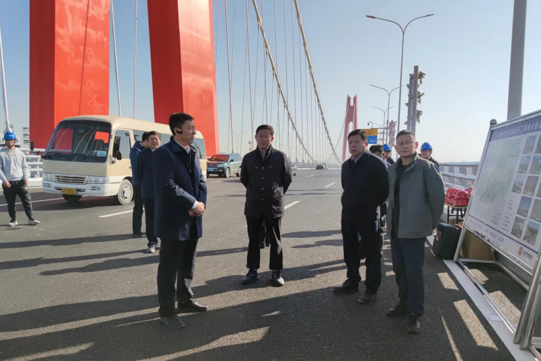 12月4日上午,濟南市城鄉交通運輸局黨組書記曹殿軍一行到濟南黃河鳳凰大橋調研項目建設情況,市交通運輸事業發展中心主任楊峰陪同調研。建設集團黨委書記、董事長張海平,副總經理許為民參加活動。