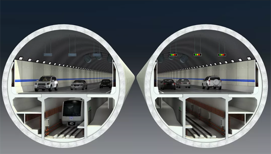 項目提出了雙道防淹門解決方案,以實現全方位有效封堵,保護城市安全。為拓展城市空間,濟南黃河隧道設計為城市市政道路和軌道交通合建方案,實現隧道空間最大利用率。“萬里黃河第一隧”設計為雙管雙層公軌合建盾構隧道,上層為公路雙向6車道,下層為軌道交通以及排煙通道、管廊和逃生通道,實現一次穿越黃河的利用率最大化,極大降低了對環境的影響。