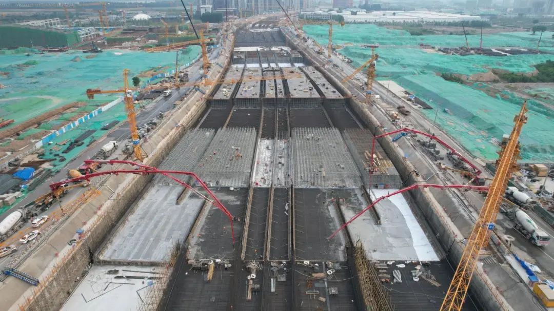 工程開工建設以來,五個工區同步平行施工,24小時飽和施工,加大人力、機械投入,高峰期間三千余人同步會戰,保障工程有序推進。施工過程中,在嚴格執行環保標準的前提下,利用兩個月的時間完成160萬立方米的通道基坑土方開挖,相當于開挖兩個大明湖的方量。完成鋼筋制作安裝8.6萬噸,澆筑混凝土43.9萬立方米,地面道路水穩18萬噸,瀝青12萬噸。