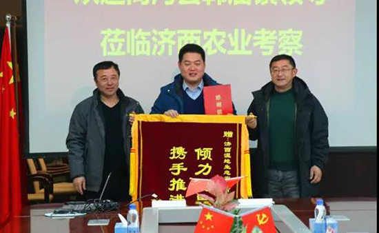 1月15日,韓廟鎮黨委書記趙軍帶隊到濟西濕地生態農場有限公司考察學習,與濟西濕地生態農場有限公司執行董事、總經理張慶忠就深化雙方合作,促進鄉村振興進行座談交流,并就濟西濕地生態農場有限公司幫助韓廟鎮大屯村銷售“新梨7號”送上錦旗和感謝信,鎮黨委副書記、政協委員聯絡室主任張戈及相關負責同志參加活動。