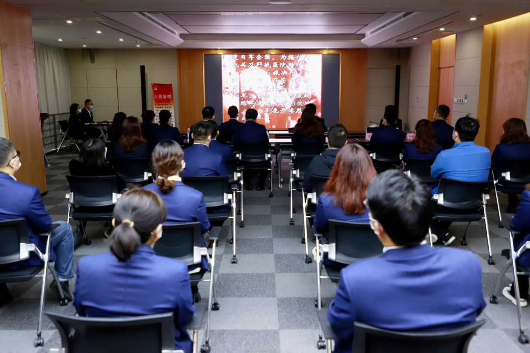 全體黨員首先通過網絡參觀了位于樂陵的冀魯邊區革命紀念館,了解了冀魯邊區光輝的歷史。大家在人民英雄紀念碑前默哀,深切緬懷革命先烈,向英雄致以最崇高的敬意,感悟革命先烈用鮮血和生命鑄就的“敢為人先、大愛為國、不屈不撓、團結奉獻”的冀魯邊紅色精神。面向黨旗,全體黨員重溫入黨誓詞,再一次向黨做出莊嚴承諾。隨后,全體黨員共同觀看經典抗戰電視劇《亮劍》片段,感悟“面對強大的對手,明知不敵,也要毅然亮劍,即使倒下,也要成為一座山,一道嶺!”的亮劍精神。
