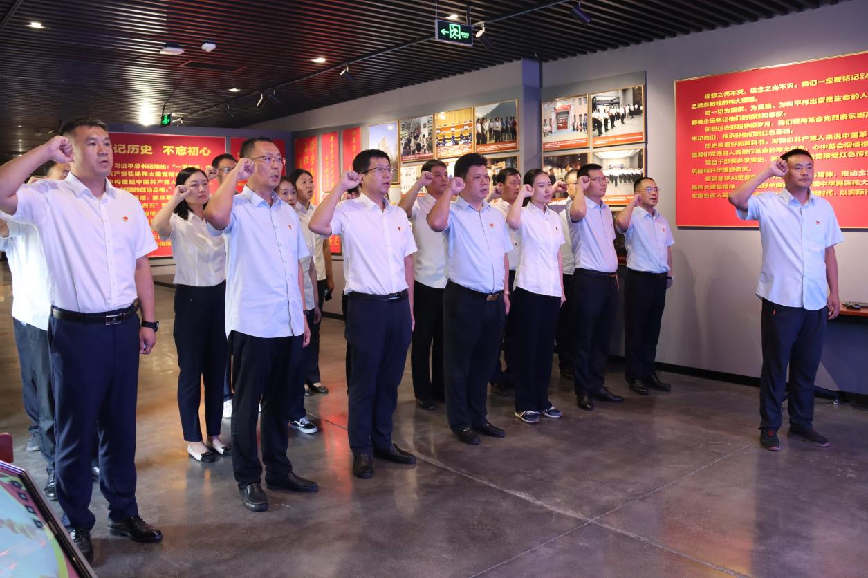全體黨員干部滿懷崇敬之情,仔細瞻仰了大量珍貴的史料圖片和烈士遺物,詳細了解了山東早期黨組織發展與斗爭的崢嶸歲月,深情回望了鄧恩銘、劉謙初等“四五”烈士波瀾壯闊的革命生涯,全體黨員干部面對黨旗,重溫入黨誓詞,并集體觀看了文獻紀錄片。