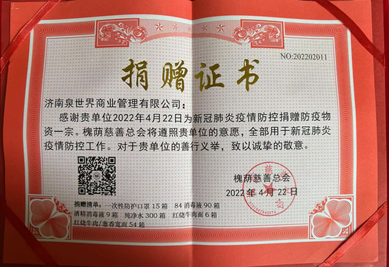 此次活動,濟南泉世界商業(yè)管理有限公司黨支部積極組織干部職工向槐蔭區(qū)住建局、槐蔭區(qū)城管局、槐蔭區(qū)交警大隊捐贈口罩、84消毒液、消毒酒精、礦泉水、方便面等防疫用品和生活物資,同時對一線工作者表示敬意。