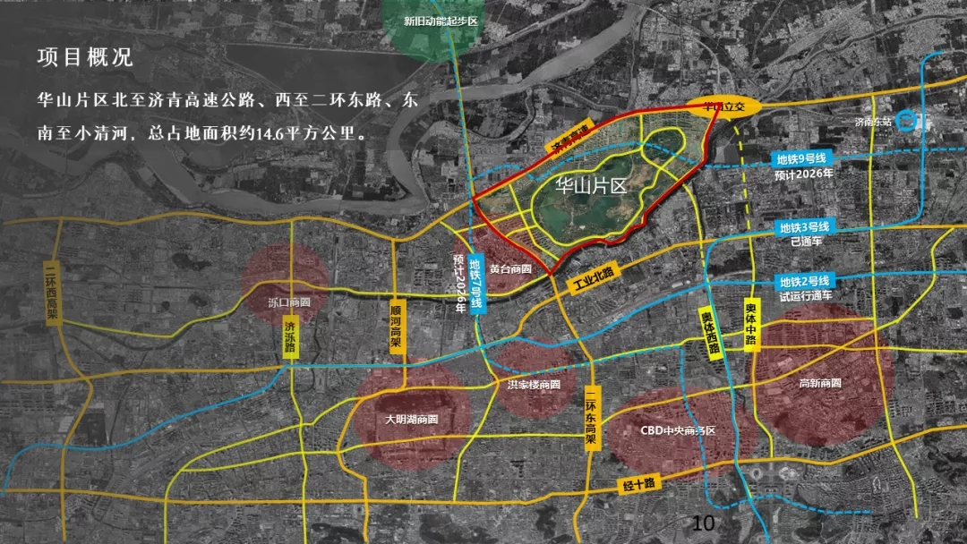 華山片區總占地面積約14.6平方公里,地處濟南市東北部,北鄰起步區,與鵲山遙相呼應,區位優越。片區規劃剩余可出讓用地約1666畝,擬采用整體策劃研究、分期實施的方式推進。
