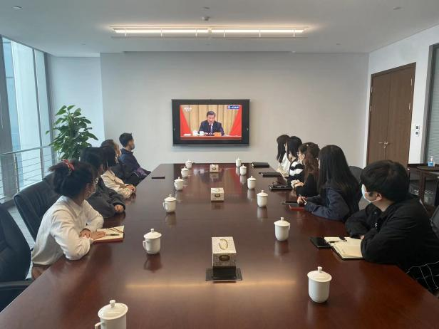 濟南建設集團投資有限公司團支部組織在崗團員青年、團干部集中觀看直播。