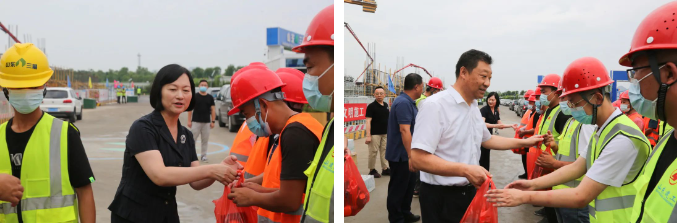 活動(dòng)中,慰問(wèn)人員將防暑降溫慰問(wèn)品送到建設(shè)者手上,感謝他們?yōu)闈?jì)南建設(shè)所作出的貢獻(xiàn),并叮囑大家勞逸結(jié)合,增強(qiáng)自我防護(hù)意識(shí),避免高溫及疲勞作業(yè),統(tǒng)籌抓好疫情防控、安全生產(chǎn)和項(xiàng)目建設(shè)工作。