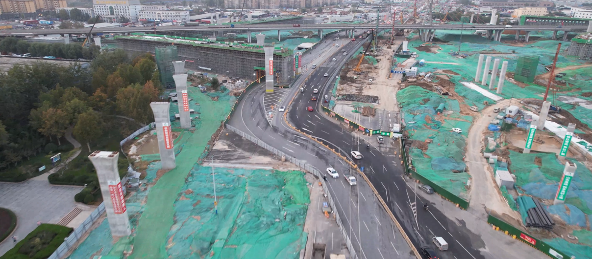 市民張先生反映黃河大橋零點立交附近,一直有工程在施工,圍擋把路變窄了,每天上下班都很擁堵,想了解何時可以施工完畢,恢復交通?