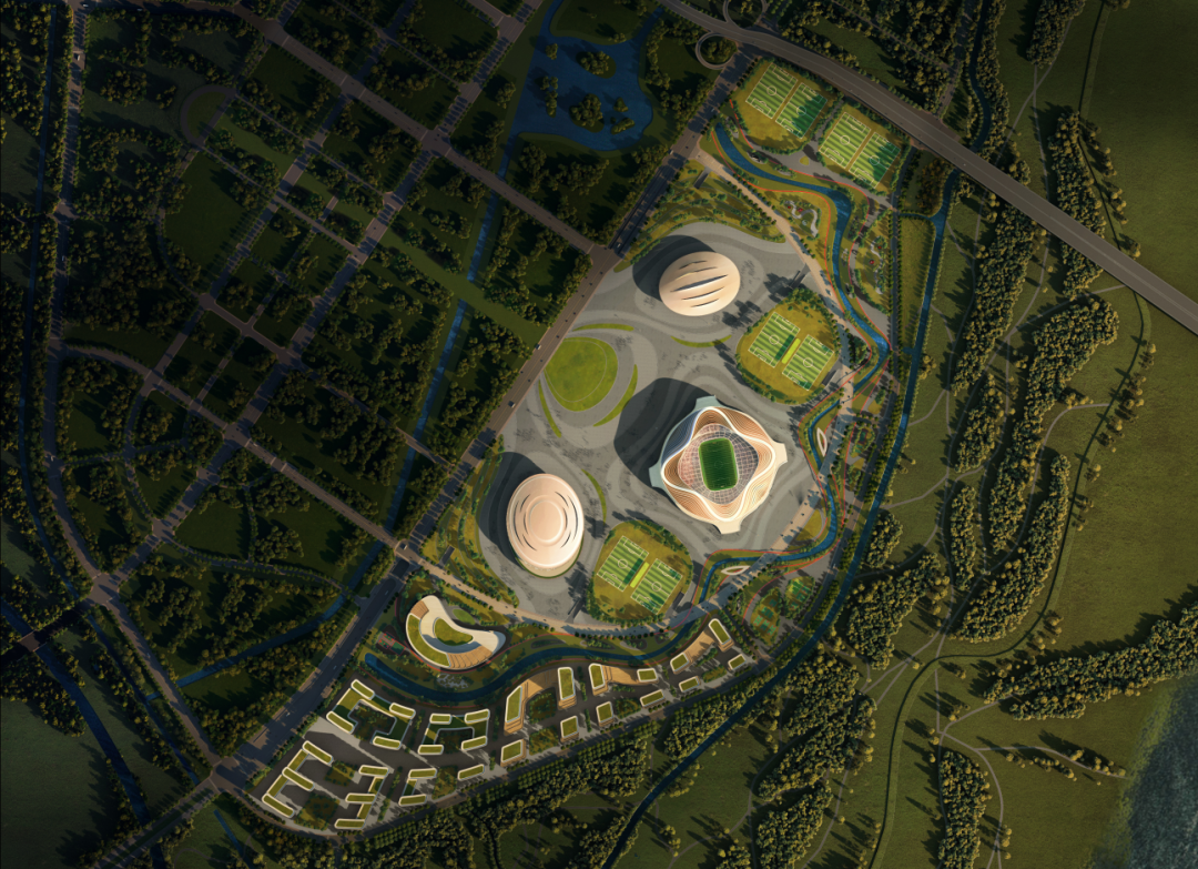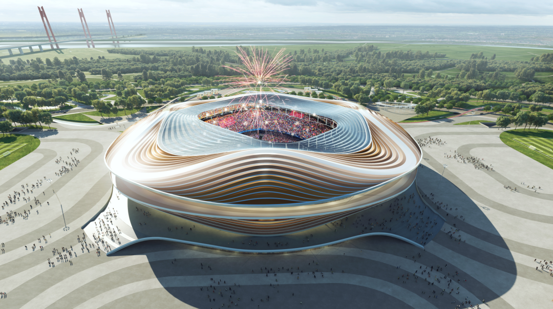 專業(yè)足球場項目,總建筑面積約20.1萬平方米,其中地上建筑面積約14.8萬平方米,地下建筑面積約5.3萬平方米。包含6萬余座席,具備承擔世俱杯、亞洲杯等國際足聯(lián)A級賽事及國內大型賽事等專業(yè)賽事。