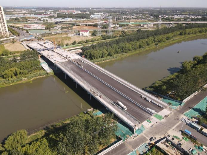 奧體中路跨小清河橋梁工程跨越南水北調明渠及小清河河道,橋梁全長349m,橋面寬50m,于2021年4月15日開工建設,是奧體中路北延的重要組成部分,建成后將主城區和華山片區,濟樂高速與市區快速連通,是構成濟南市東部重要的南北向交通通道。