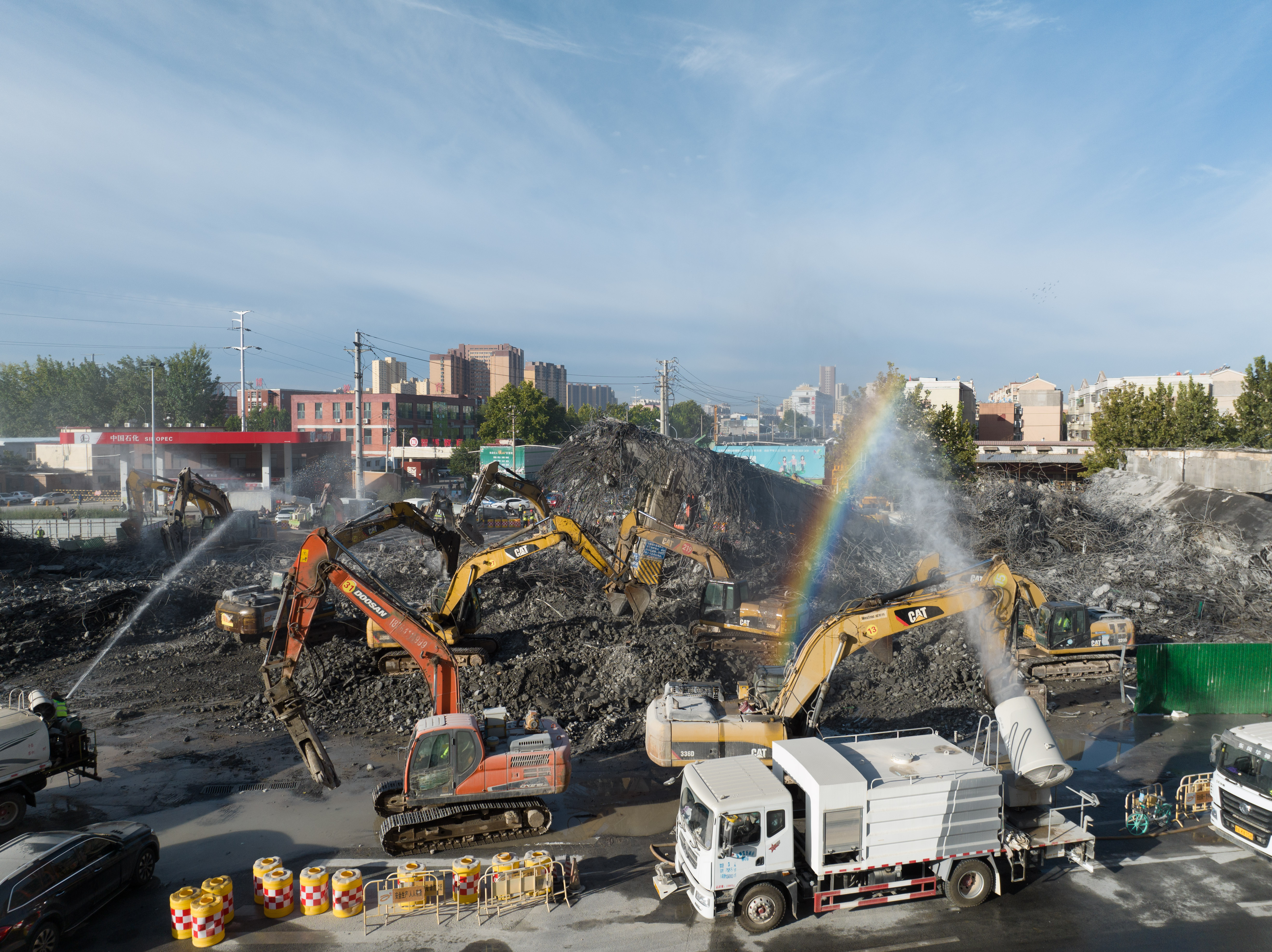 經(jīng)過前期充分準(zhǔn)備,9月23日20:00-9月24日8:00,執(zhí)行快速拆除任務(wù),將橋身和墩柱全部拆除;9月24日執(zhí)行拆除后的清理任務(wù)。期間33臺機械同時作業(yè),整個拆除過程,銜接緊湊、安全有序,確保了二環(huán)東高架第四聯(lián)、第五聯(lián)安全、快速的完成拆除和恢復(fù)車輛通行工作。