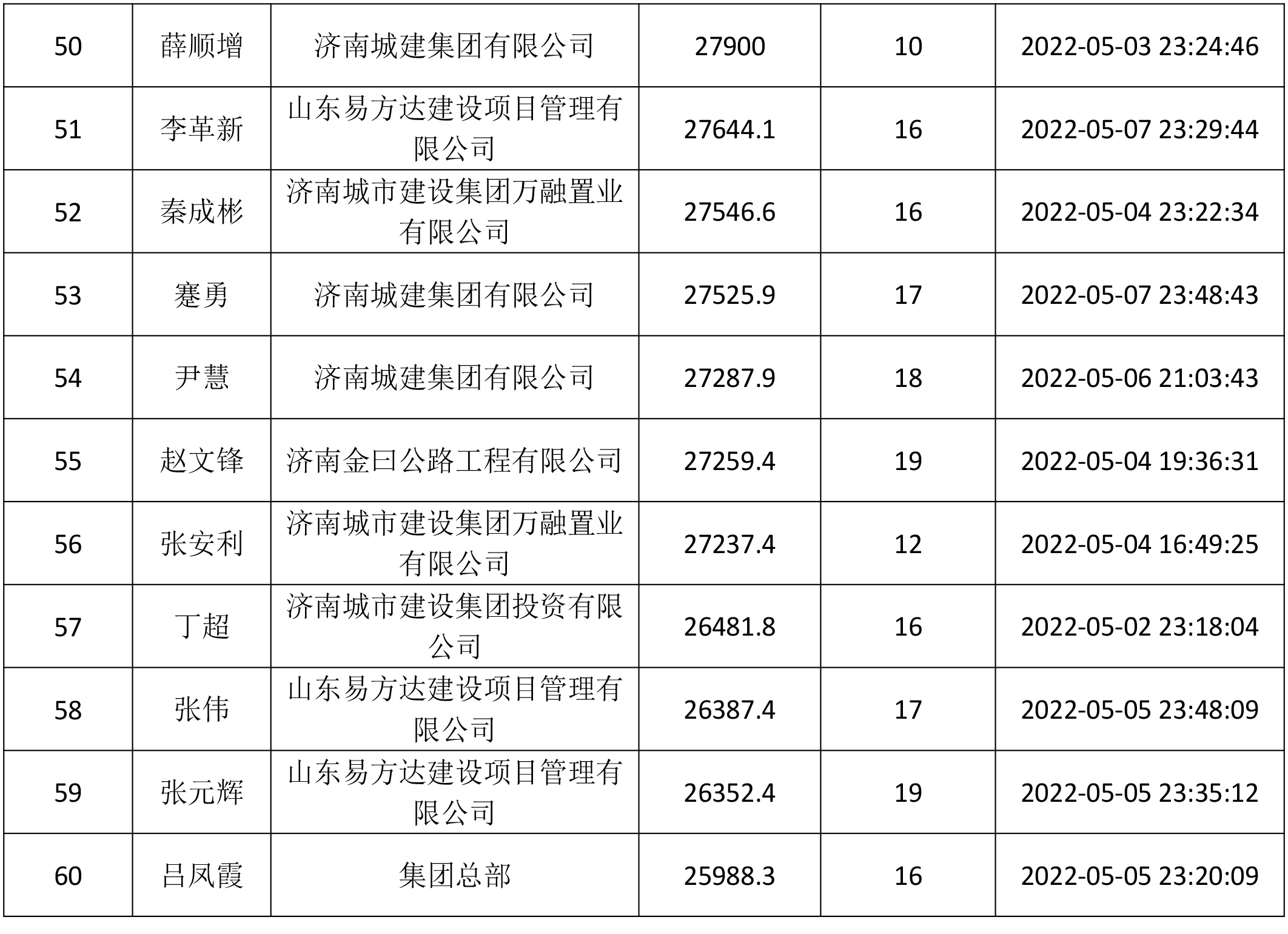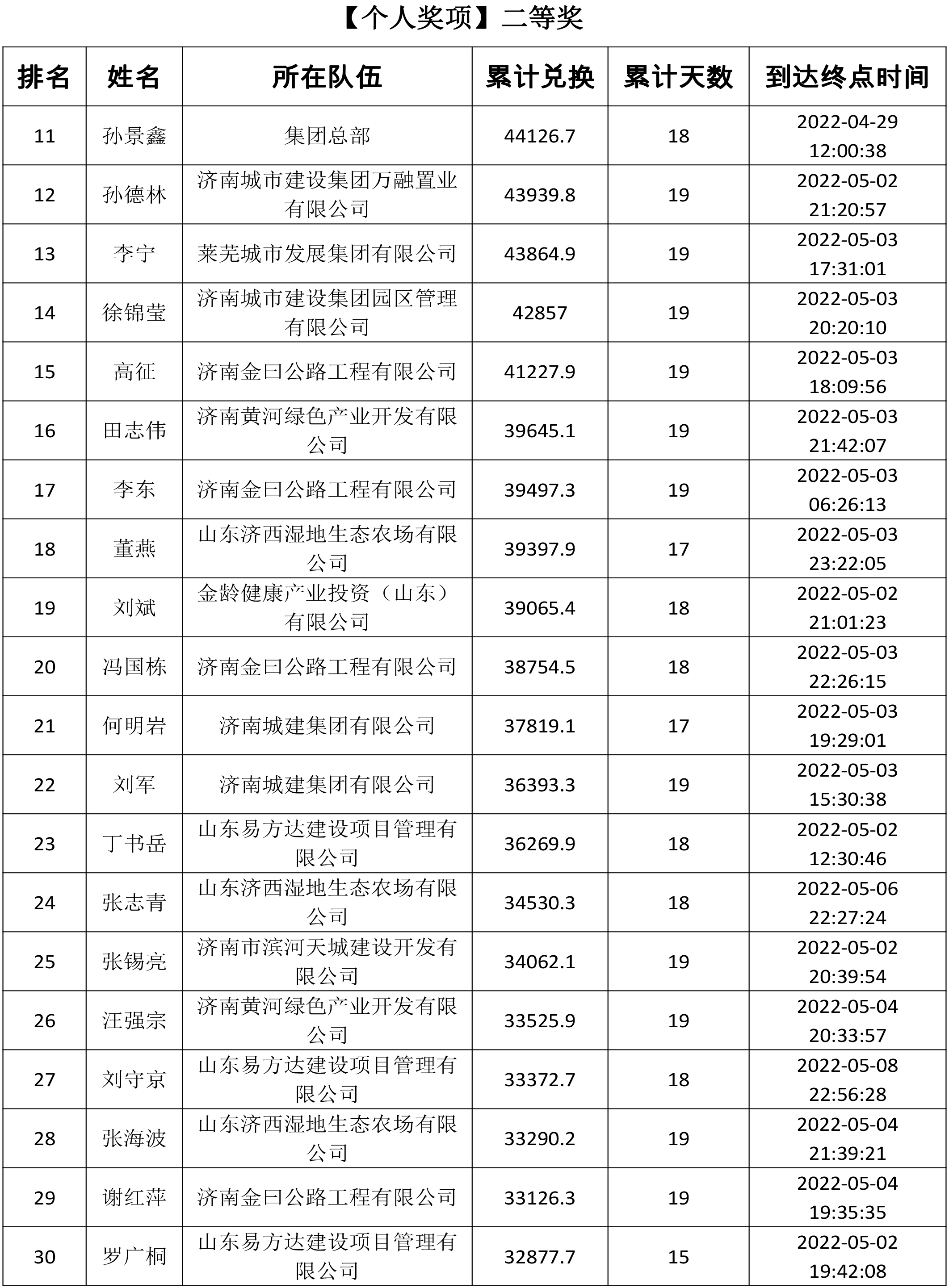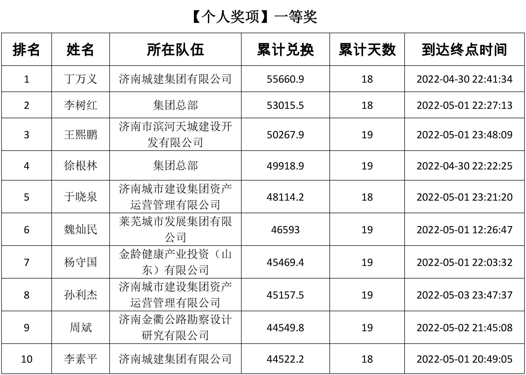 由共青團濟南城市建設集團有限公司委員會主辦,共青團濟南金曰公路工程有限公司委員會、濟南新城文化傳媒有限公司承辦的“青春有夢 建設無疆”——職工線上健步走活動于5月13日正式落下帷幕。此次活動共持續19天,參與人數達1716人。