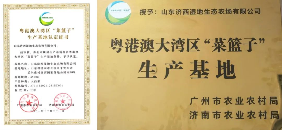 近日,山東濟西濕地生態(tài)農(nóng)場有限公司通過粵港澳大灣區(qū)“菜籃子”生產(chǎn)基地認定,并被授予認定證書和基地牌匾,標志著濟西農(nóng)業(yè)高質量的特色農(nóng)產(chǎn)品獲得“通行證”進入粵港澳大灣區(qū)的“交易大廳”,為公司農(nóng)產(chǎn)品開拓粵港澳市場奠定了基礎。